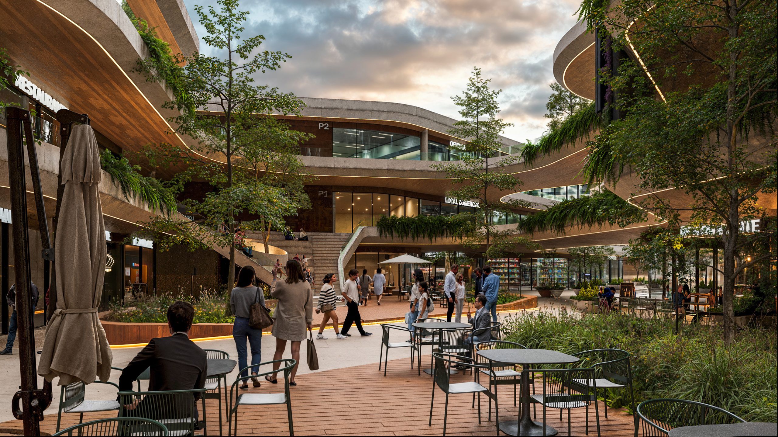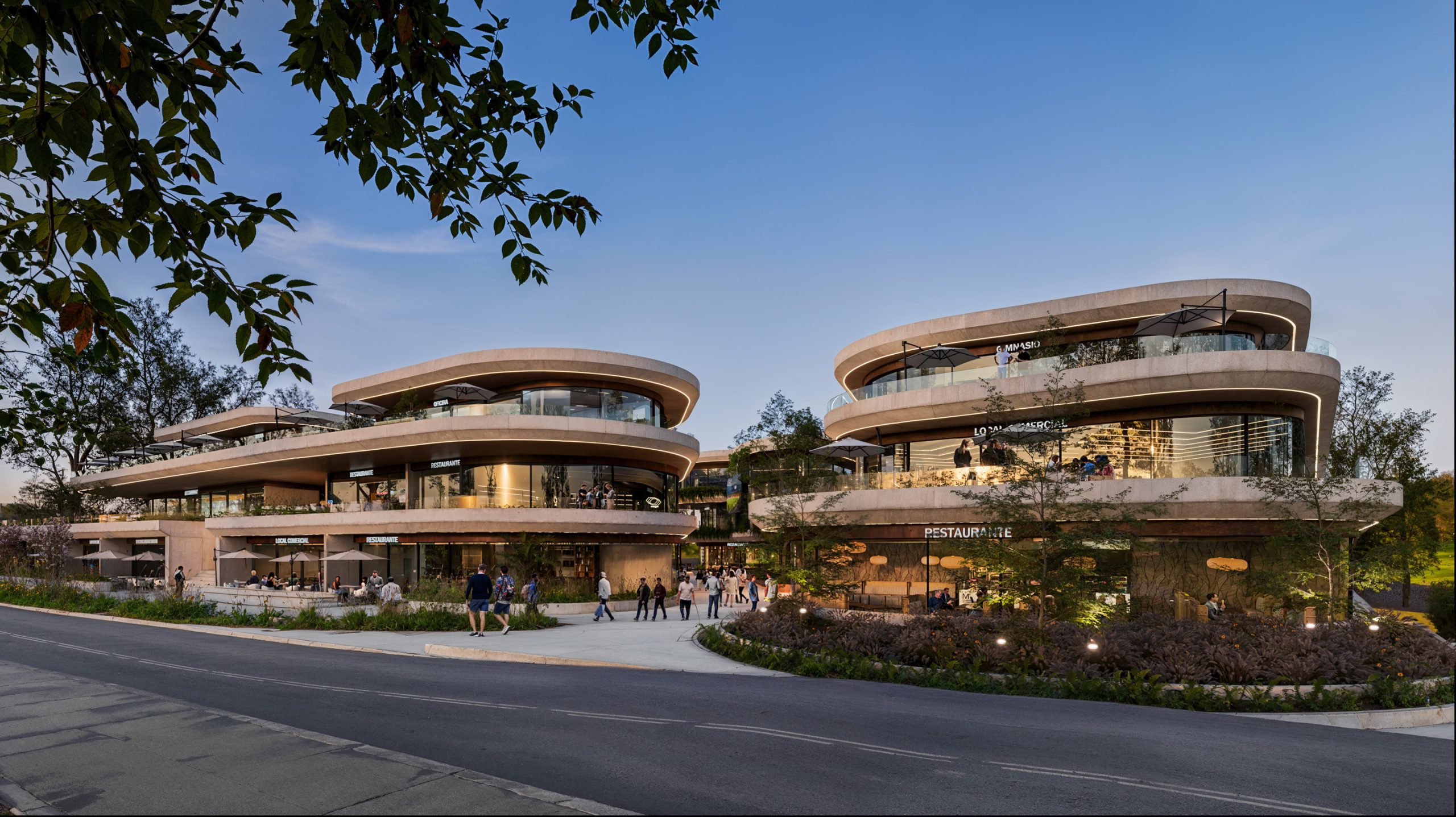 El programa combina comercio, restaurantes, entretenimiento, oficinas y gimnasio, organizados en volúmenes que se rotan sutilmente para generar terrazas, dinamismo espacial y visuales hacia el paisaje del valle. Concebido como un proyecto de uso mixto, Plaza Puembo integra arquitectura, paisaje y vida urbana, aportando un nuevo referente y fortaleciendo la identidad del sector.