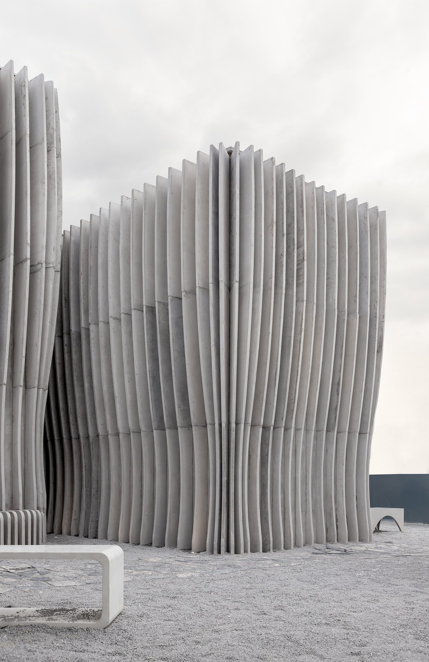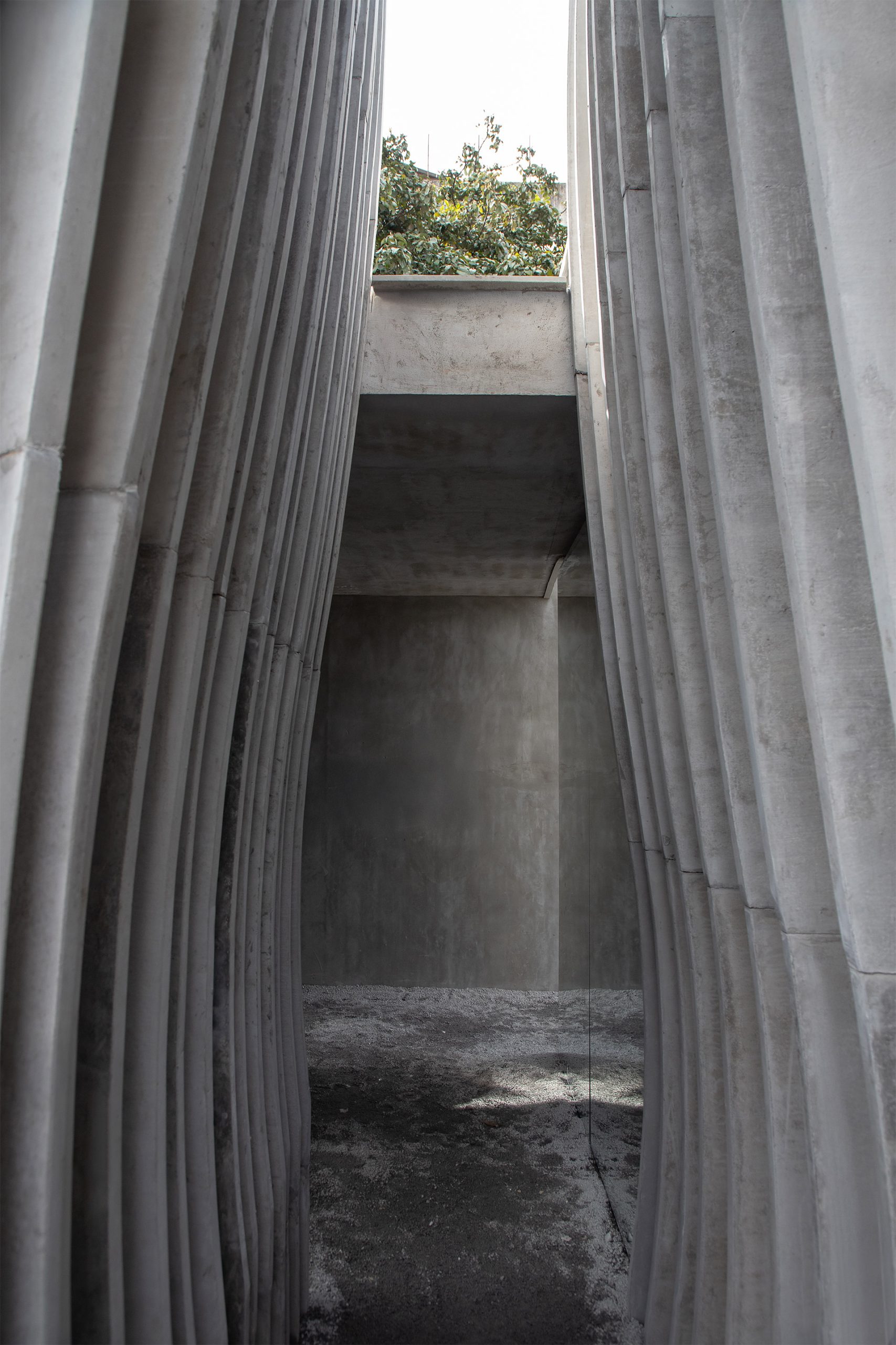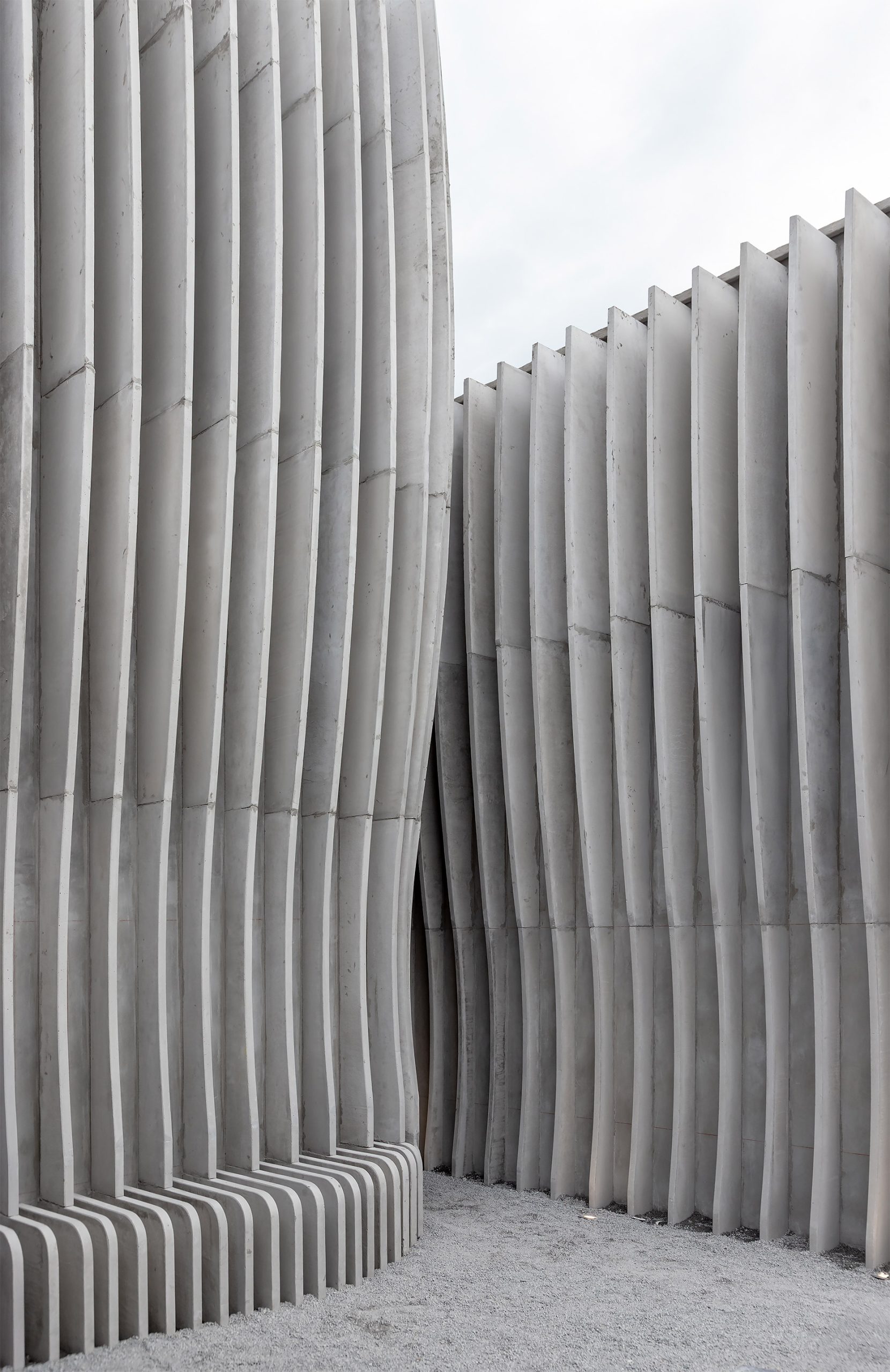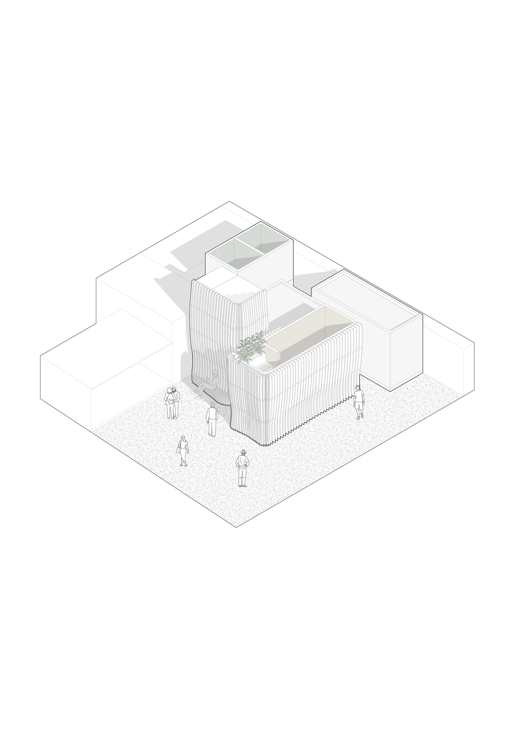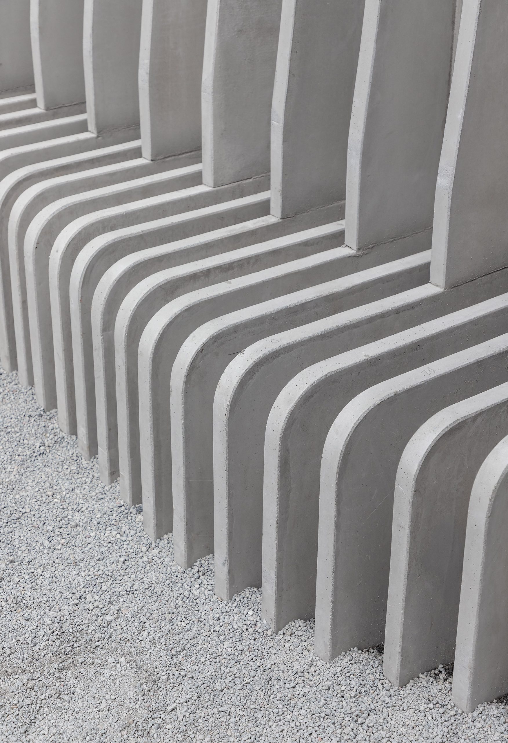 Se fabricaron más de 431 piezas de hormigón diseñadas a medida para crear una fachada paramétrica concebida como una piel escultórica: un envolvente brutalista y orgánica que busca congelar el instante de la fundición y expresar el origen fluido del hormigón. Este exterior gris contrasta con los interiores vibrantes, definidos por vegetación abundante y paletas de colores dinámicas. Varios de los espacios interiores se mantuvieron abiertos al cielo, permitiendo que la luz natural, el clima y la hora del día modelen activamente la experiencia del usuario.