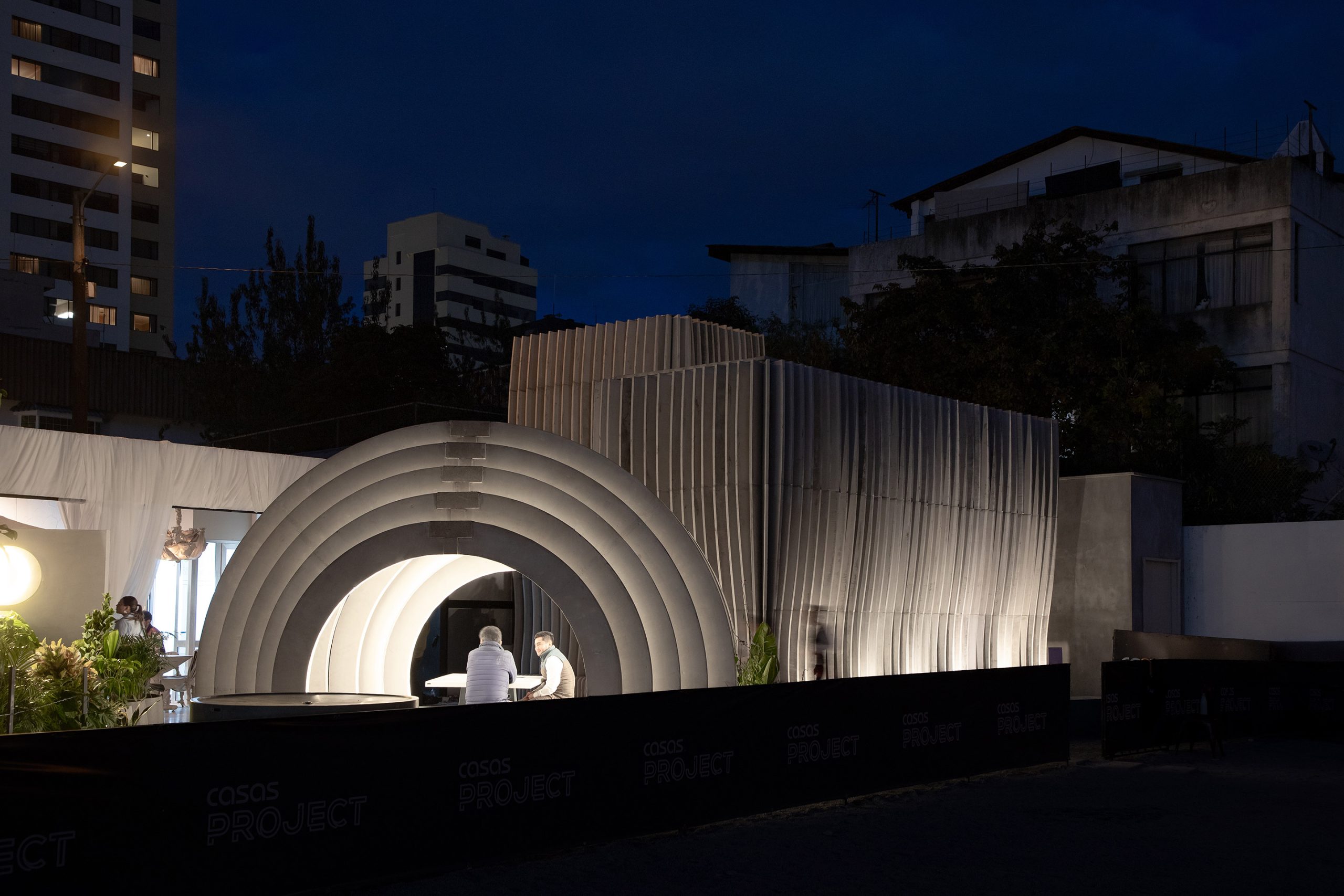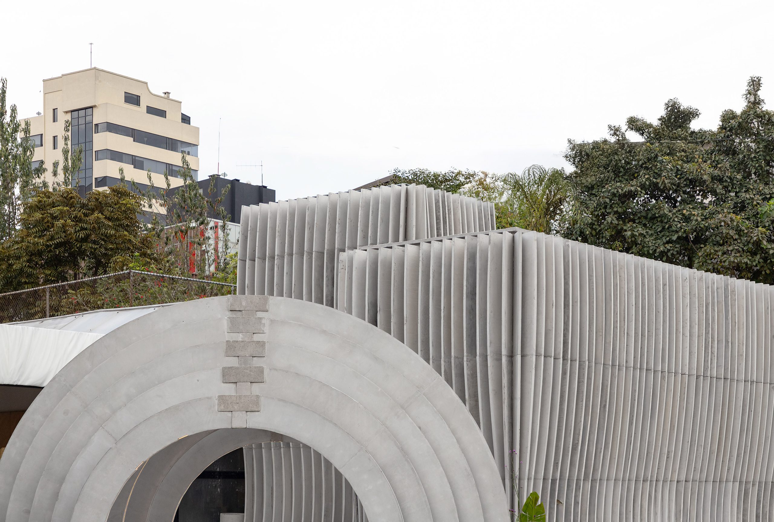 Umbral es una intervención arquitectónica de una semana que reimagina un baño existente para una exposición temporal de diseño en Quito, Ecuador. Diseñado con más de 431 piezas de hormigón diferentes, su fachada escultórica congela la esencia fluida del hormigón en movimiento. Interiores a cielo abierto, vegetación exuberante y colores vivos crean un recorrido sensorial moldeado por la luz y el clima.