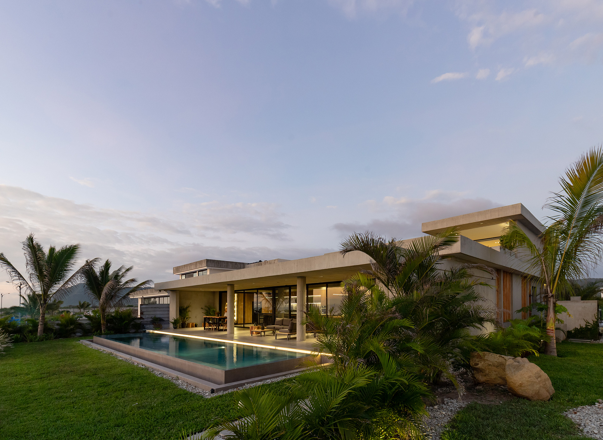 Casa Horizonte es una residencia costera que plantea una reflexión sobre cómo pertenecer al paisaje sin imitarlo ni competir con él. El proyecto asume su condición de objeto arquitectónico y establece un diálogo sutil con el horizonte, donde la experiencia del usuario se construye de manera gradual a través de recorridos que alternan compresión y expansión, luz y sombra, interior y exterior.