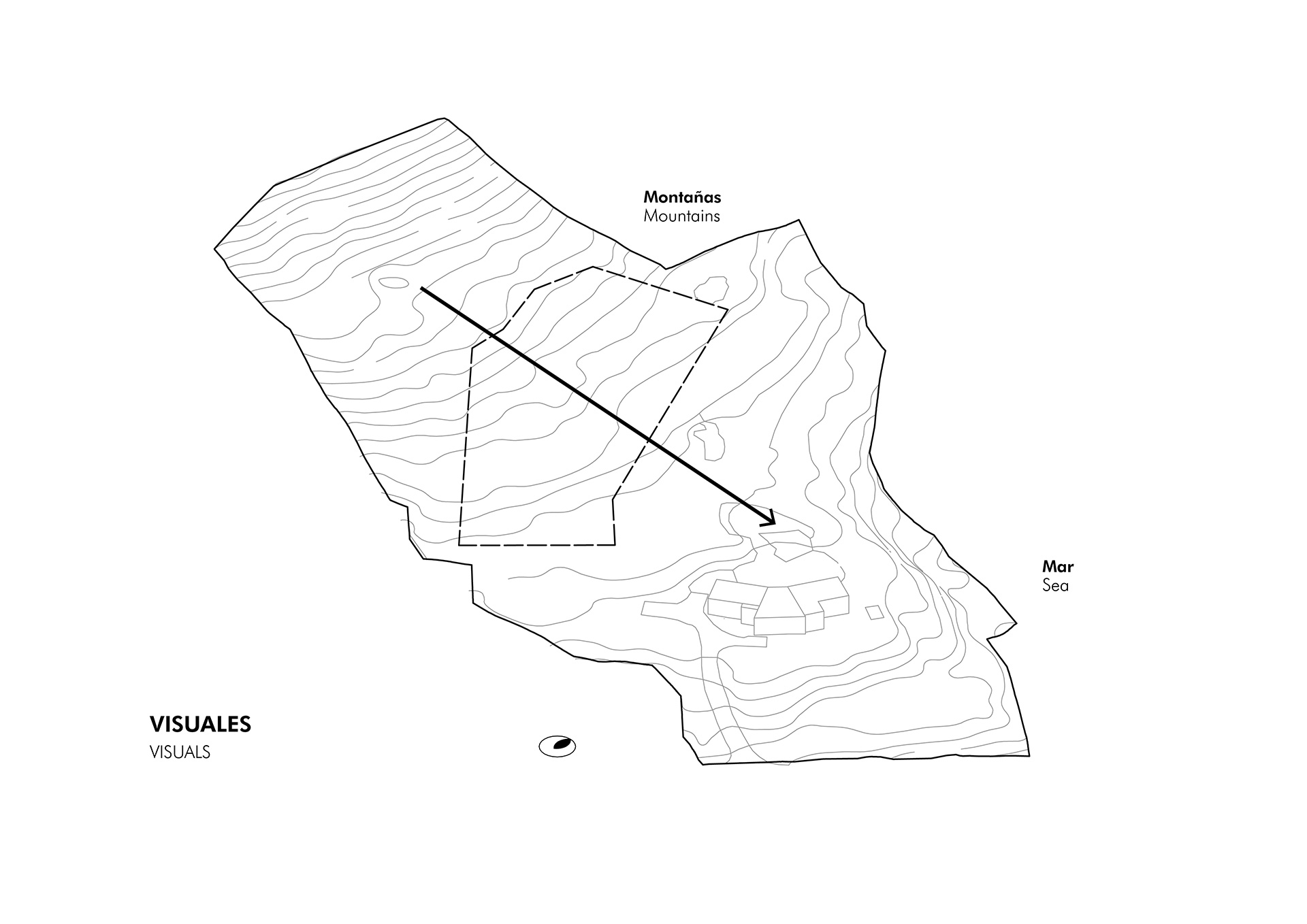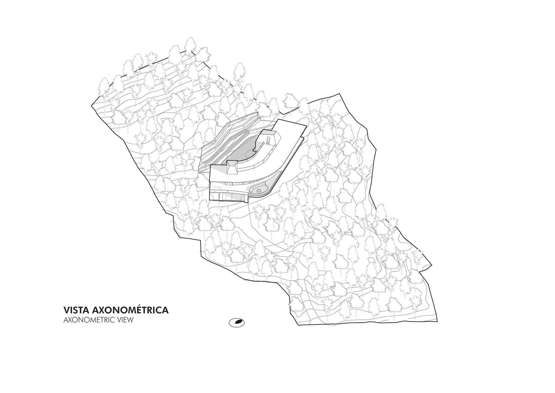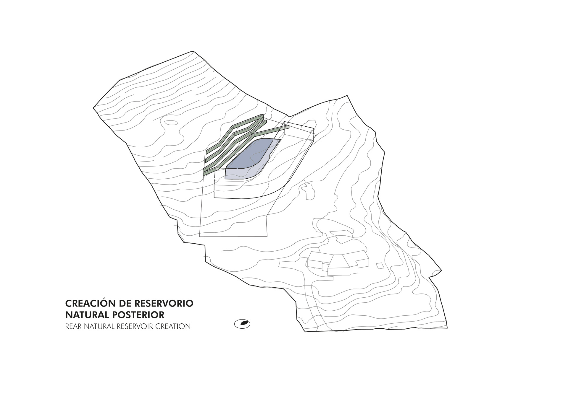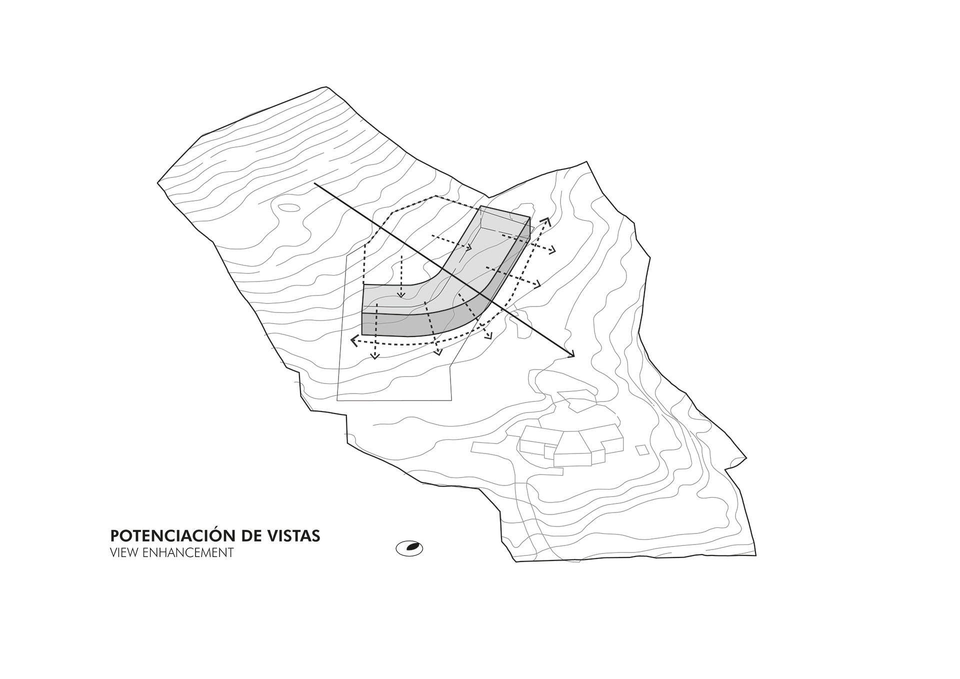 Este concepto da forma a un volumen horizontal contenido, que se adapta a la pendiente natural y se integra a la ladera, priorizando la inserción en el lugar por sobre la imposición formal. Elementos verticales de piedra interrumpen esta continuidad y establecen un diálogo directo entre los espacios habitables y la masa de la montaña, anclando la arquitectura —tanto física como simbólicamente— al territorio....